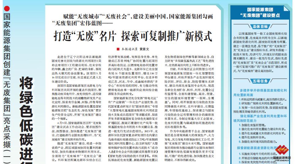 國家能源集團報:打造“無廢”名片 探索可復制推廣新模式